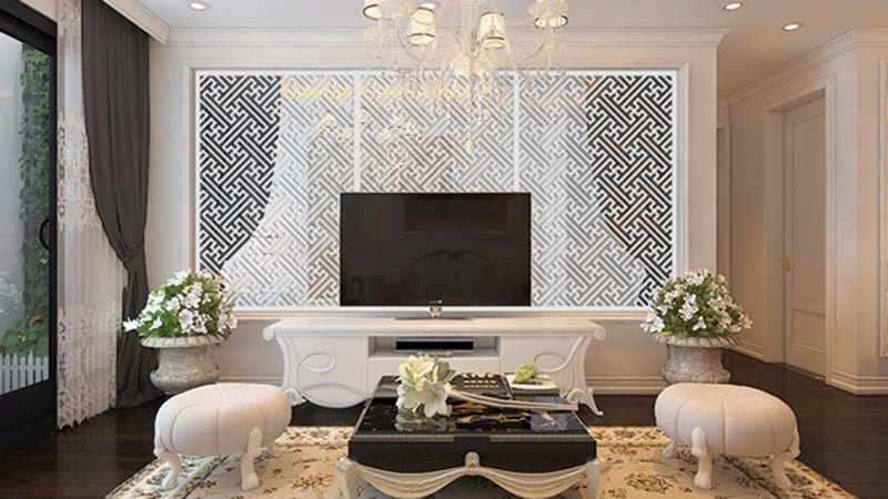 Sự thanh thoát của phong cách Tân cổ điển đến từ những điểm nhấn nhẹ nhàng nhưng hiệu quả của vách ngăn CNC hay các chi tiết phào chỉ, phù điêu, tạo nên các mảng khối ngăn chia không gian nội thất. Sự hiện diện của các chất liệu nội thất cao cấp cùng những đường nét cổ điển được tiết chế vừa phải tạo nên sự sang trọng mà tinh tế, hài hòa cho các phòng chức năng.